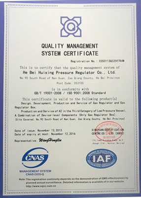 主導(dǎo)產(chǎn)品切斷式煤氣調(diào)壓器通過(guò)河北省經(jīng)濟(jì)委員會(huì)、省標(biāo)準(zhǔn)計(jì)量局認(rèn)可,獲得采用國(guó)際準(zhǔn)認(rèn)可證書(shū)